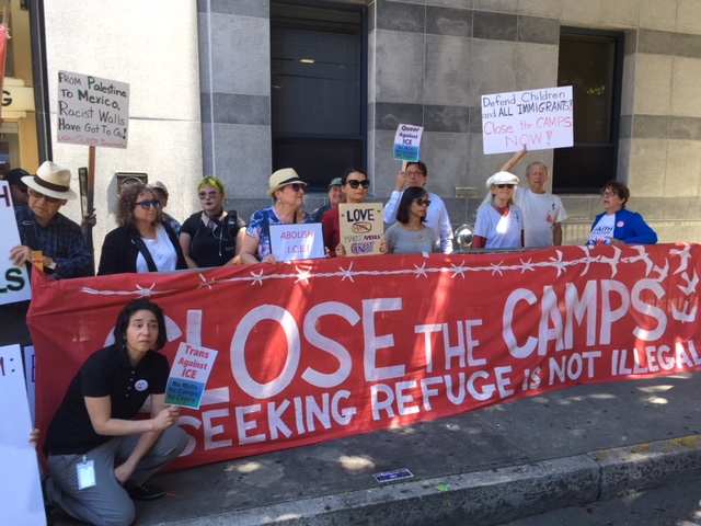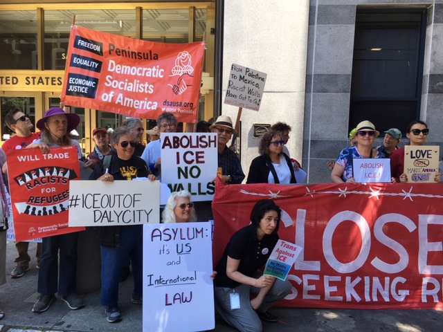 Forty people came to San Francisco from San Mateo County to participate in Month of Momentum: 30 Days of Action to Close the Camps. Thanks to Pacifica Peace People, Faith in Action Bay Area, and Peninsula Democratic Socialists of America for making this a really strong action.